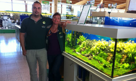 Im Dehner-Markt Schwäbisch Hall hat der Fachausbilder Maciej Strzalko zusammen mit seiner Stellvertreterin Manuela Bögner ein 120 cm Aquarium nach Aquascaping Gesichtspunkten perfekt eingerichtet.