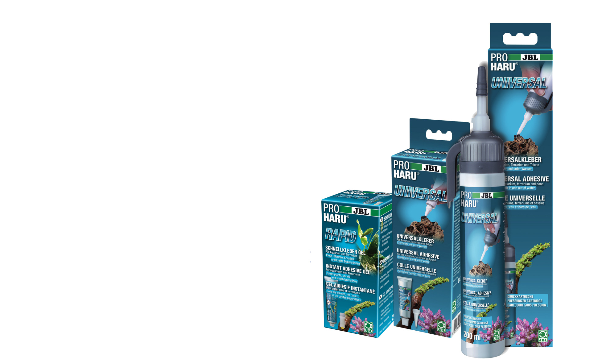 JBL ProHaru® Universal is a permanently elastic hardening adhesive and sealant which is polymer-based. It bonds and seals almost all materials to each other, both in and out of water (except PE and PP).