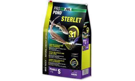 JBL PROPOND STERLET is a sinking food and reaches the bottom through the tube, where the sturgeons learn to pick it up. That’s how the sturgeons get “their” food and the other pond dwellers can’t eat it away!