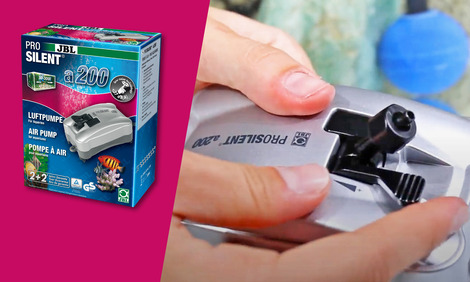 The JBL ProSilent air pump is TÜV tested. With 200 l/h air output and only 3.5 W power consumption it is powerful and ensures safety through an air connection with hose screw connection. A noise suppression air chamber, the reinforced housing wall and vibration dampening silicone feet reduce any noise. The device is equipped with a check valve.