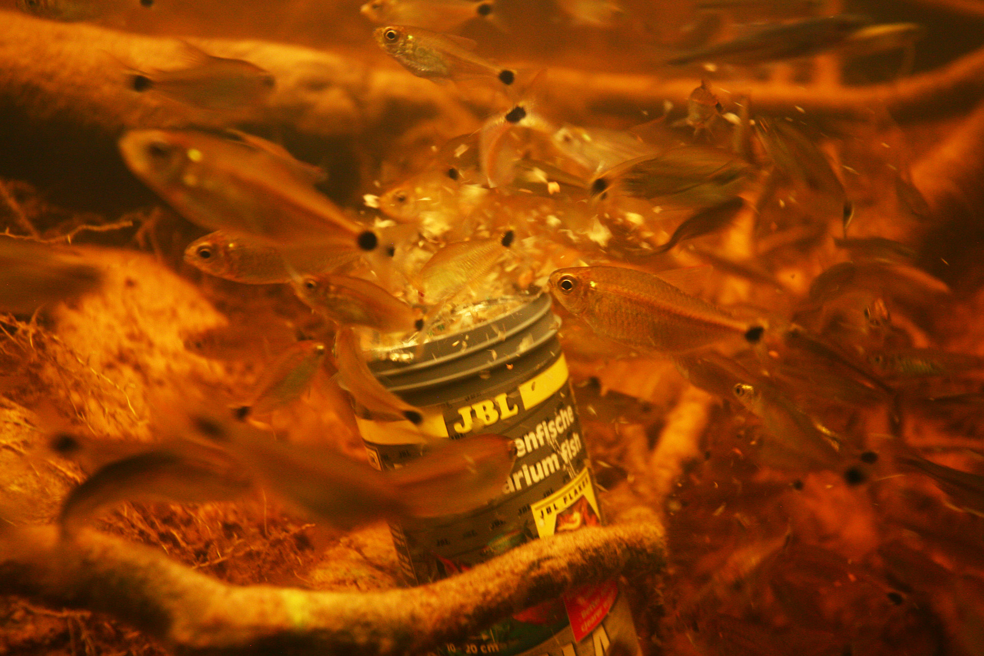 Hormis les observations des espèces de poissons présentes, les essais de nourrissage sous l’eau font partie des moments les plus impressionnants. Les poissons se précipitent avec voracité sur les sticks JBL PlanktonPur proposés et sur la nourriture en flocons JBL Gala. La plongée en plus grande profondeur est très impressionnante. On quitte la surface pour s’enfoncer dans un « no mans’land » brunâtre et sombre. Dès deux mètres de profondeur, on ne fait plus que deviner la surface et au-dessous de vous, toujours rien. Entre quatre et huit mètres de profondeur, rien à voir : ni au-dessus, ni au-dessous de nous. Puis soudain, le fond est en vue. On distingue des troncs d'arbre, un sol sablonneux, des pierres et des poissons. L’eau est transparente comme du cristal, mais marron foncé. On ne peut même pas deviner la surface ! Cette expérience est difficile à décrire et nous ne pouvons que recommander à chacun de plonger une fois à quelques mètres de profondeur en eaux noires. Pas nécessairement à huit mètres, quatre mètres suffisent !
